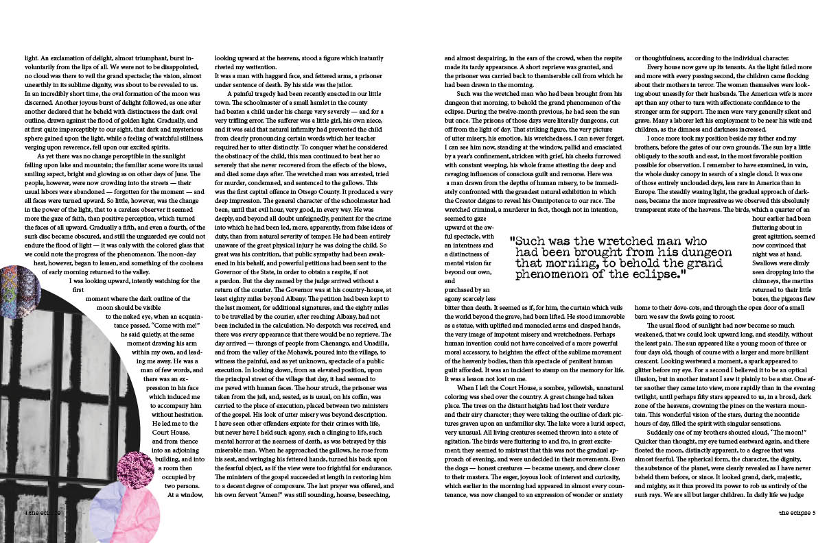 In this project I was to design a spread that would match best with the magazines that I observed. I choose Prevention for its unique style and fun size.This is a continuation of the project where I was to design a spread that would match best with the magazines that I observed. I choose Make for its very structured look.This is a continuation of the project where I was to design a spread that would match best with the magazines that I observed. I choose The New Yorker for the one most out of my comfort zone.In this project I was to design 3 distictly different magazines from scratch. This is Angst, an edgy teen girl magazine for the punk, emo, and goth teen girls. This was the magazine most in my comfort zone.A contiuation of the project where I was to design 3 distictly different magazines from scratch. This is The Eagle, a political magazine for conservative middle aged adults. This was the magazine most outside of my comfort zone.A contiuation of the project whereI was to design 3 distictly different magazines from scratch. This is Tread, an outdoor magazine for the youge adult to mid thirties adventure enthusiast.This project is where I was to design a short story as it woujld be designed for a magazine. My goal was to make the design fit the story as much as possible in both feel and theme