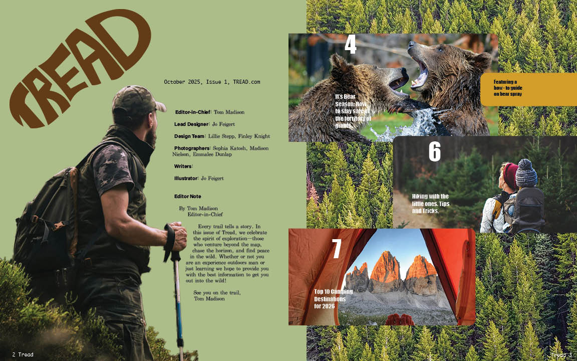 In this project I was to design a spread that would match best with the magazines that I observed. I choose Prevention for its unique style and fun size.This is a continuation of the project where I was to design a spread that would match best with the magazines that I observed. I choose Make for its very structured look.This is a continuation of the project where I was to design a spread that would match best with the magazines that I observed. I choose The New Yorker for the one most out of my comfort zone.In this project I was to design 3 distictly different magazines from scratch. This is Angst, an edgy teen girl magazine for the punk, emo, and goth teen girls. This was the magazine most in my comfort zone.A contiuation of the project where I was to design 3 distictly different magazines from scratch. This is The Eagle, a political magazine for conservative middle aged adults. This was the magazine most outside of my comfort zone.A contiuation of the project whereI was to design 3 distictly different magazines from scratch. This is Tread, an outdoor magazine for the youge adult to mid thirties adventure enthusiast.This project is where I was to design a short story as it woujld be designed for a magazine. My goal was to make the design fit the story as much as possible in both feel and theme